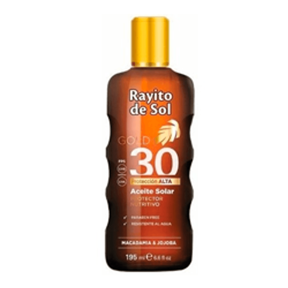 El aceite bronceador Rayito de Sol FPS 30 permite obtener un bronceado luminoso y saludable gracias a su protección solar y activos hidratantes. Su textura sedosa facilita una aplicación uniforme y duradera, cuidando la piel contra los rayos dañinos.