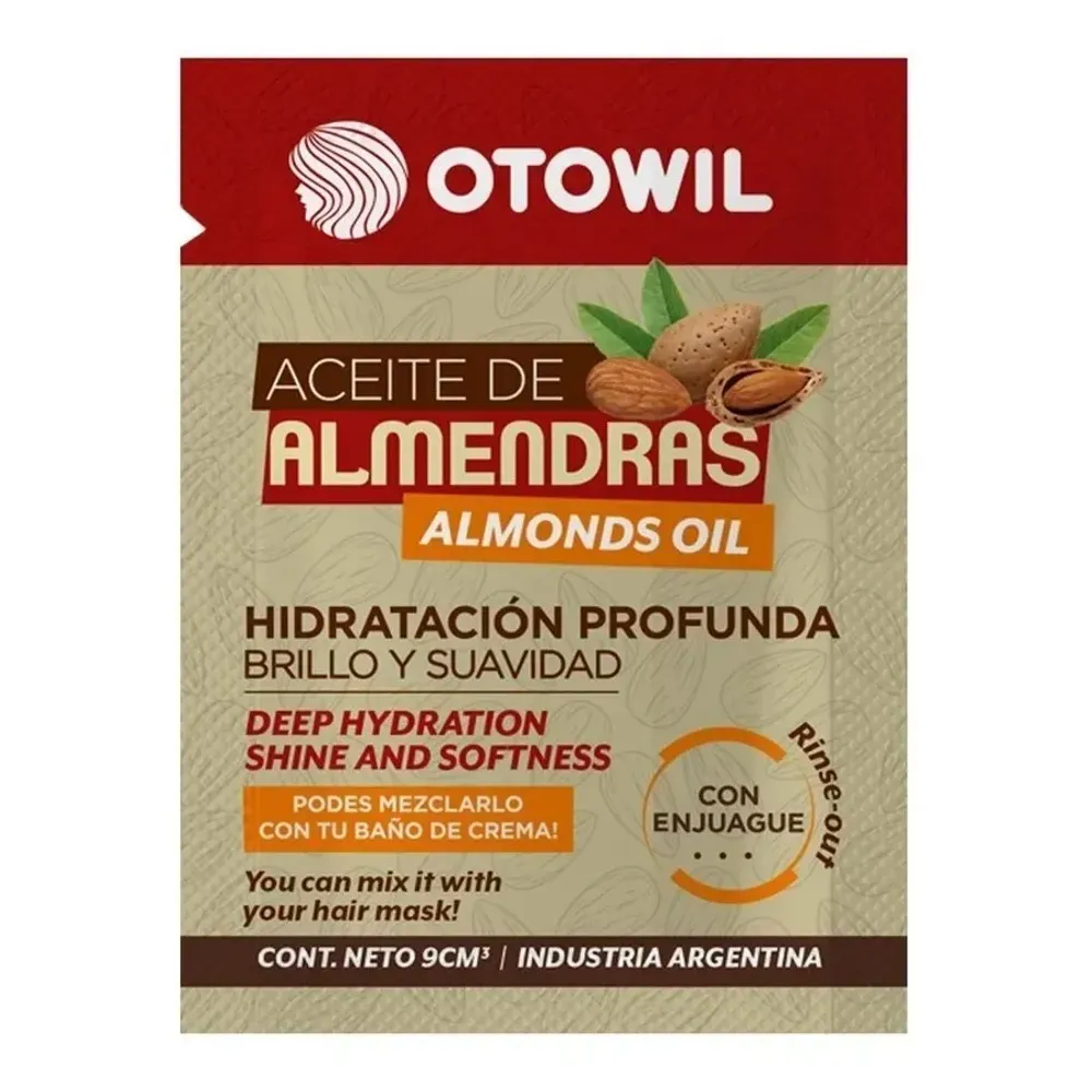 Tratamiento capilar con aceite de almendras enfocado en la nutrición y suavidad del cabello. Este formato en sobre facilita la aplicación precisa, ayudando a fortalecer y proteger la fibra capilar mientras aporta un brillo saludable.