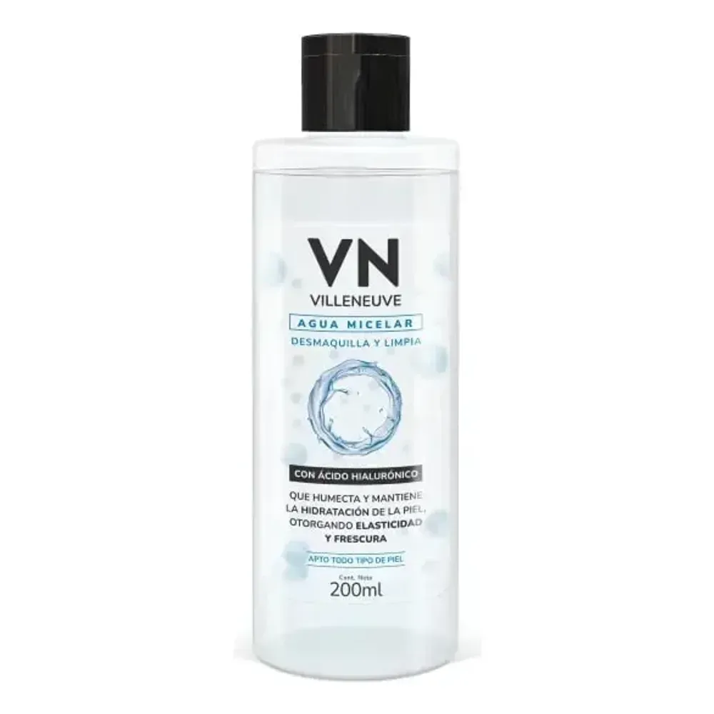 La agua micelar Villeneuve ofrece una limpieza facial suave y eficaz, actuando como desmaquillante y tóner en un solo paso. Su fórmula delicada elimina maquillaje, impurezas y polución, ayudando a mantener el equilibrio e hidratación de la piel.