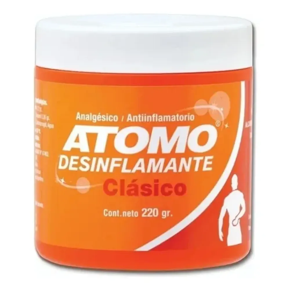 La crema Átomo Desinflamante Clásico es ideal para aliviar dolores musculares, articulares y contracturas. Su fórmula con ingredientes activos proporciona un efecto analgésico y antiinflamatorio, siendo perfecta para aplicar después de la actividad física.