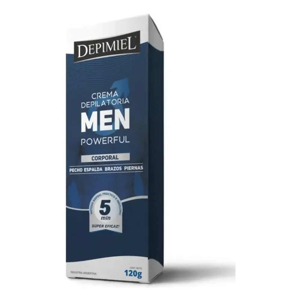 Depimiel Men Powerful es una crema depilatoria formulada especialmente para la piel masculina, diseñada para eliminar de manera rápida y efectiva el vello corporal no deseado. Su fórmula cuida la piel evitando irritaciones, proporcionando suavidad y confort tras su uso.