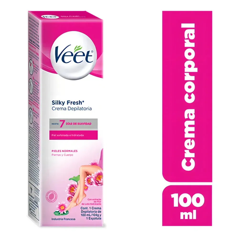 La crema depilatoria Veet para piel normal está diseñada para eliminar el vello corporal de manera rápida y sin dolor. Su fórmula suaviza y cuida la piel durante el proceso, dejando un acabado liso y sin irritaciones.