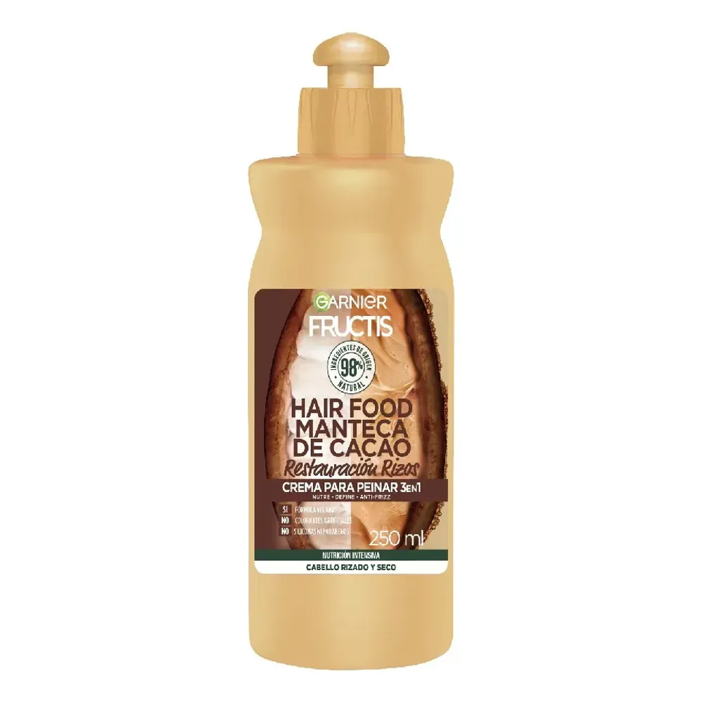 Esta crema es parte de la línea Hair Food de Garnier, diseñada para proporcionar nutrición intensiva y definición a los rizos. Funciona como una crema para peinar, acondicionador y mascarilla en un solo producto.
