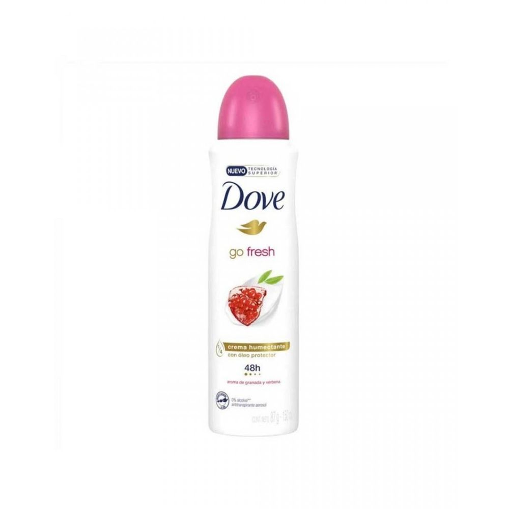 El desodorante antitranspirante aerosol Dove Go Fresh con aroma a granada está diseñado para brindar protección duradera contra el sudor y el mal olor, al tiempo que cuida la piel de las axilas con su fórmula suave.