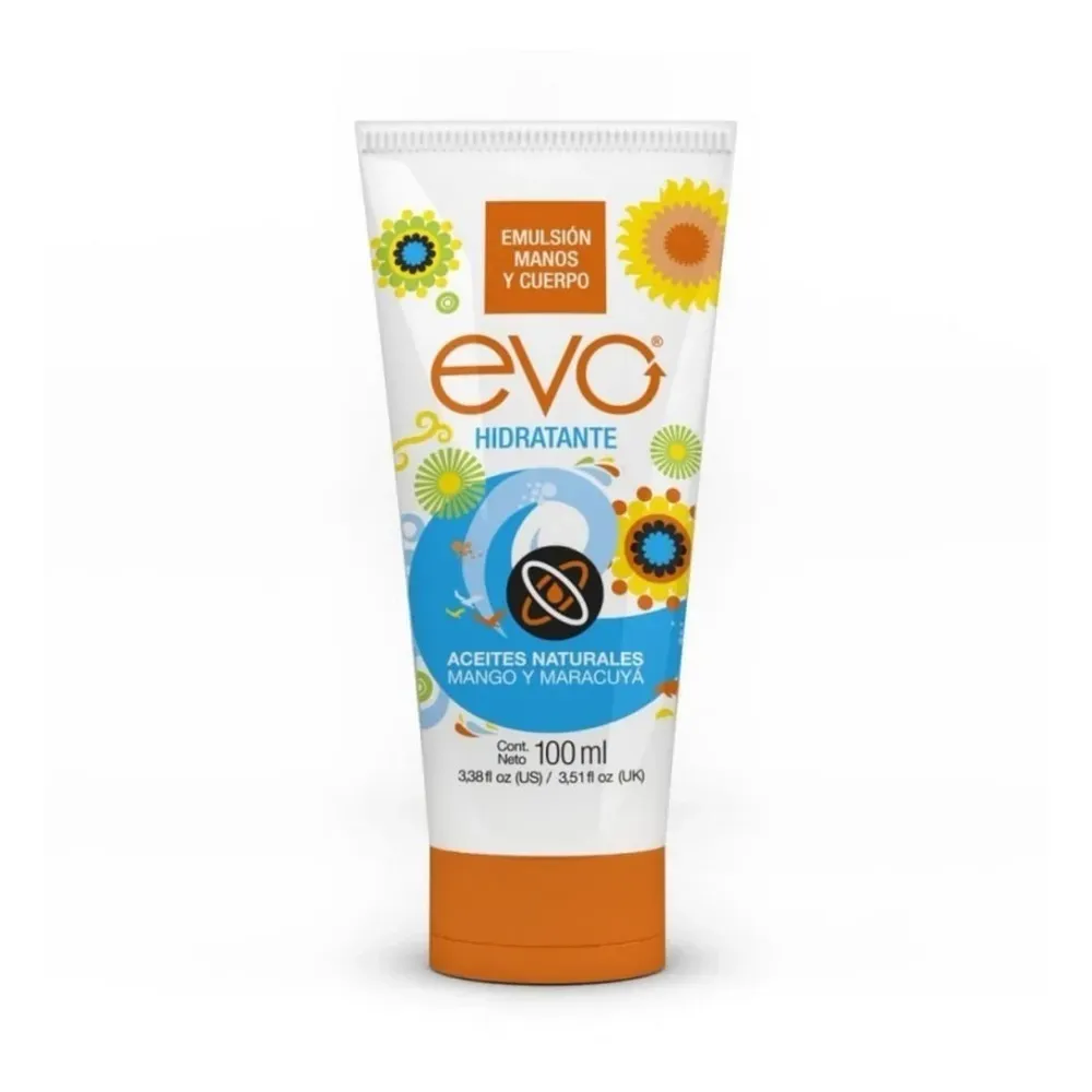 La emulsión hidratante Evo está formulada con aceites de mango y maracuyá, que refuerzan la barrera cutánea frente a la sequedad. Su textura ligera se absorbe rápidamente y deja la piel elástica y suave al tacto, ideal para uso diario en rostro y cuerpo.