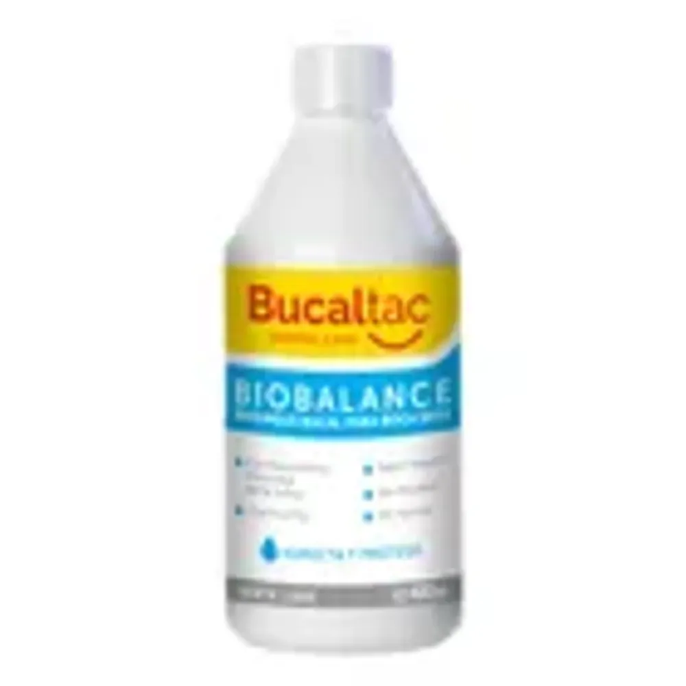 Este enjuague Bucaltac está especialmente diseñado para personas con xerostomía o sensación de sequedad bucal, aportando hidratación y confort gracias a su tecnología Biobalance que ayuda a restaurar el equilibrio natural de la boca.