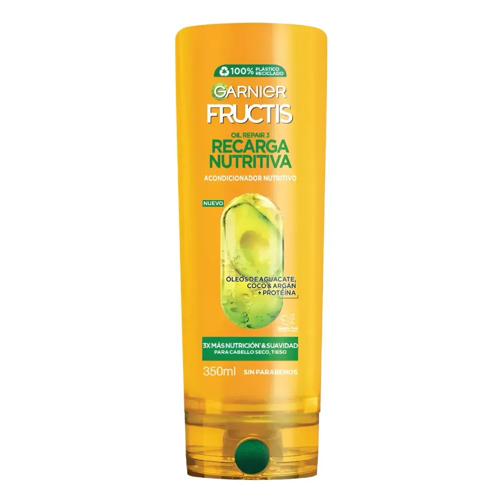 La mezcla de tres aceites nutritivos y proteína de fruta fortalece la fibra capilar, mejora la textura y protege el cabello contra daños futuros, dejando un acabado ligero y saludable.
