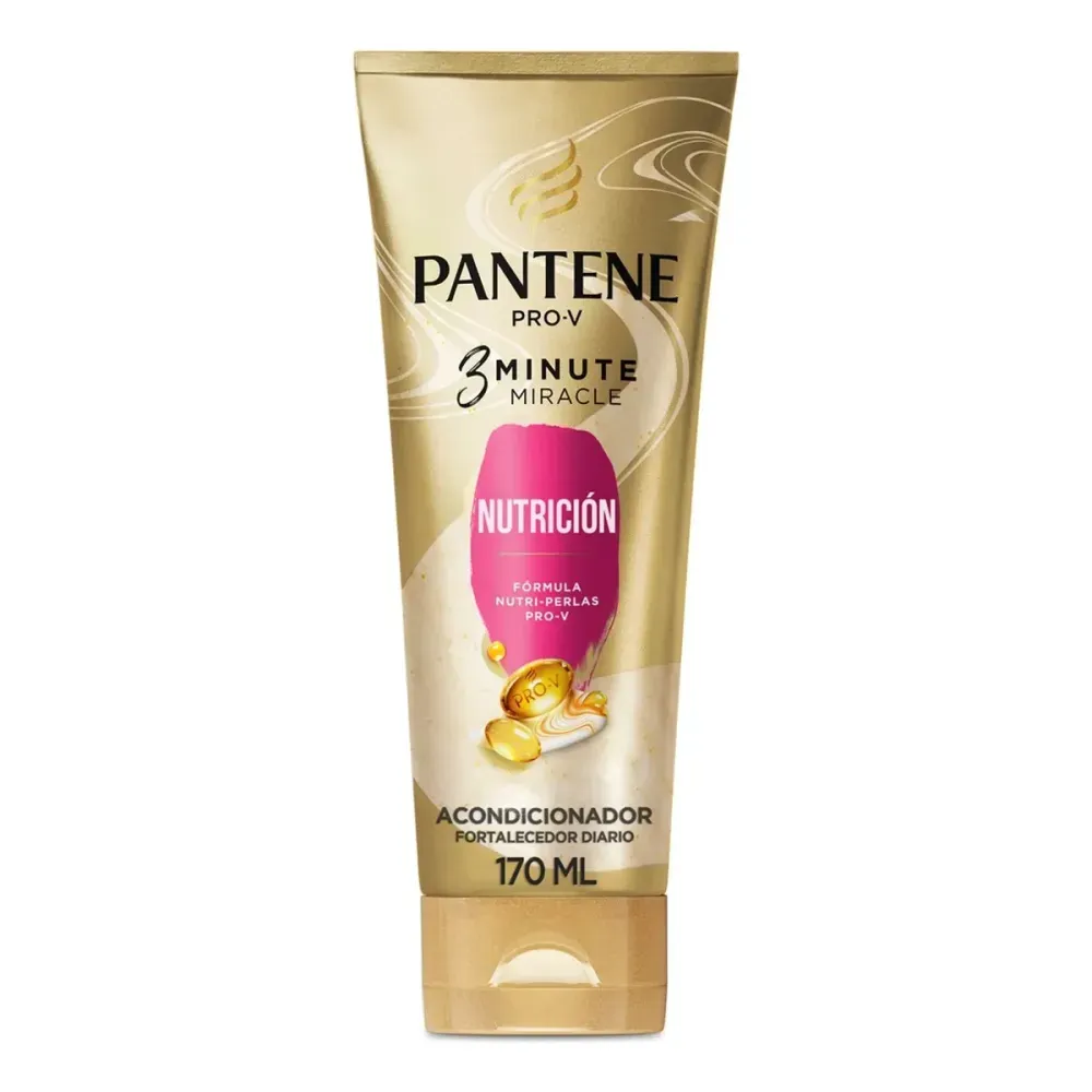 El enjuague Pantene 3 minutos milagro Nutrición ofrece un tratamiento intensivo en tiempo reducido para cabello dañado o seco. Su fórmula nutre profundamente, reparando fibras y aportando vitalidad y brillo.