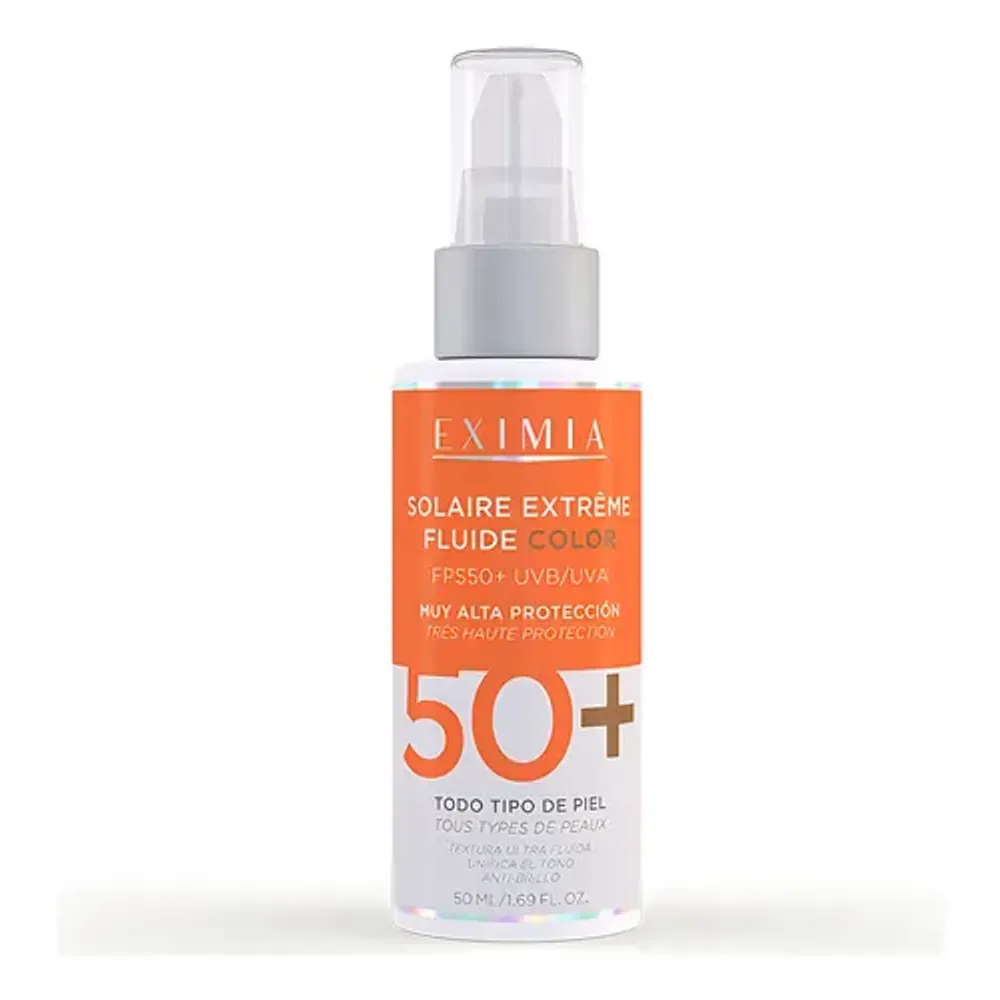 El fluido solar Eximia combina filtros solares avanzados con pigmentos tintados que protegen la piel de los daños solares y ayudan a uniformar el tono para un acabado natural. Esta fórmula es ideal para quienes buscan protección solar eficaz con un toque de color.
