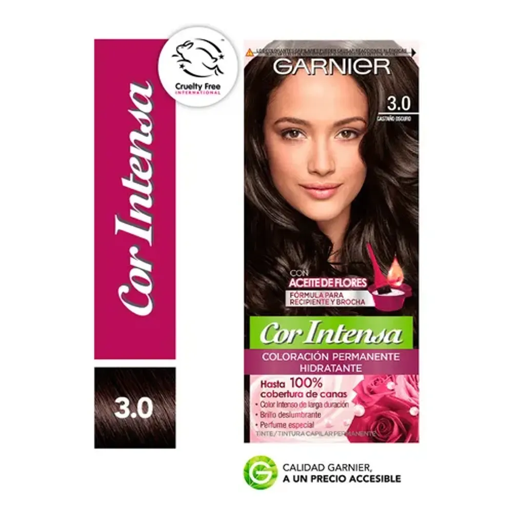 Nutrisse Color Intensa Tintura 30 Castaño Oscuro ofrece un color castaño oscuro intenso y duradero con un brillo espectacular. Su fórmula con triple aceites nutre profundamente el cabello mientras lo tiñe, dejándolo suave, sedoso y con una apariencia saludable. Cubre hasta el 100% de las canas.