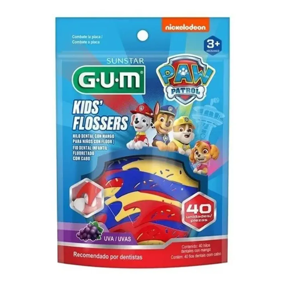 Este hilo dental tipo flosser de GUM, con personajes de Paw Patrol, está diseñado para que los más pequeños mantengan una correcta limpieza interdental con facilidad y diversión. Su diseño ergonómico facilita su uso por manos pequeñas.