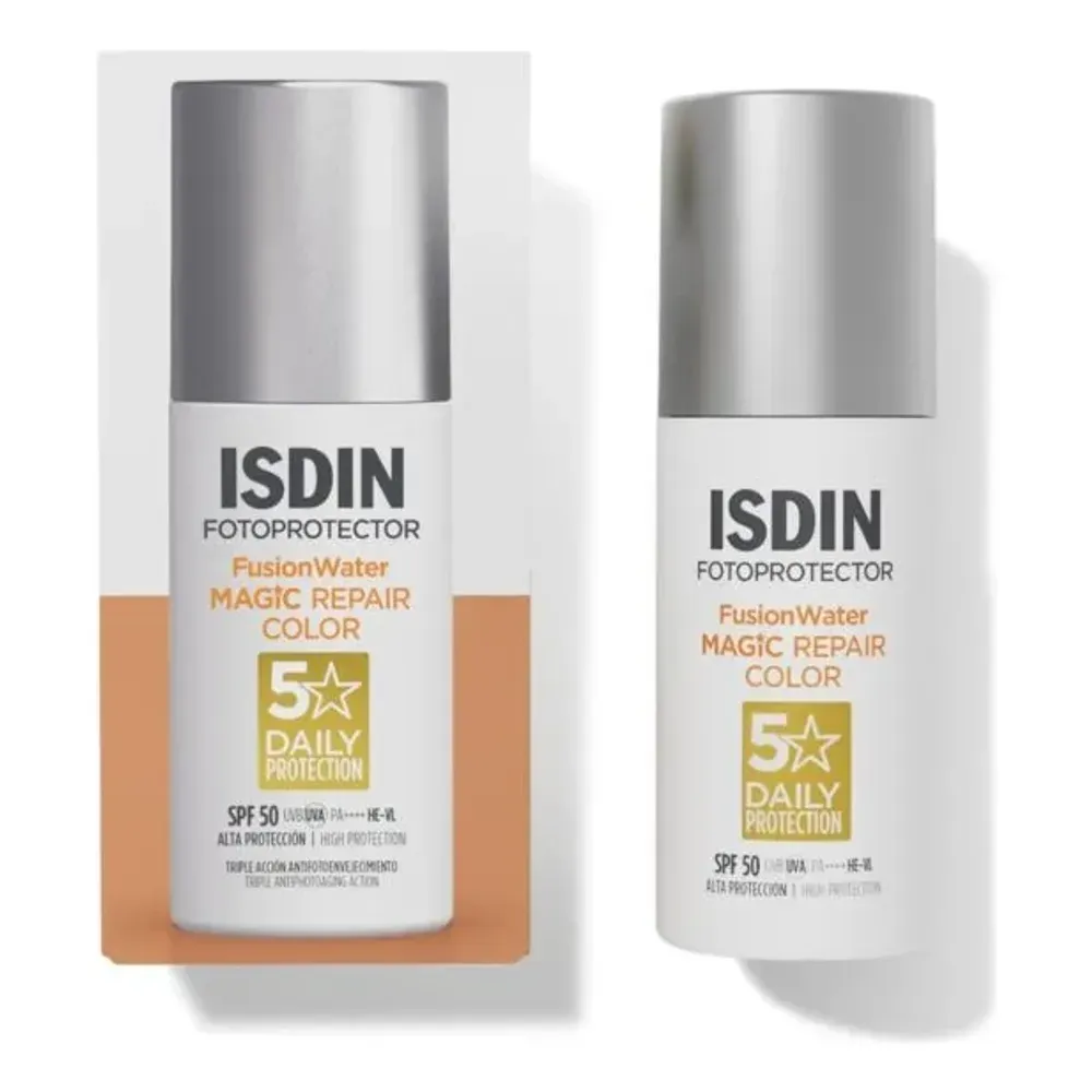 El Fotoprotector facial Magic Repair Color SPF50 de Isdin es la solución perfecta para quienes buscan una protección solar eficaz y una textura ligera. Este producto está diseñado para todo tipo de piel, ofreciendo una protección solar de amplio espectro con un factor SPF 50. Su formato fluido y ultraligero se desliza suavemente sobre la piel, dejando una sensación de frescura y confort.