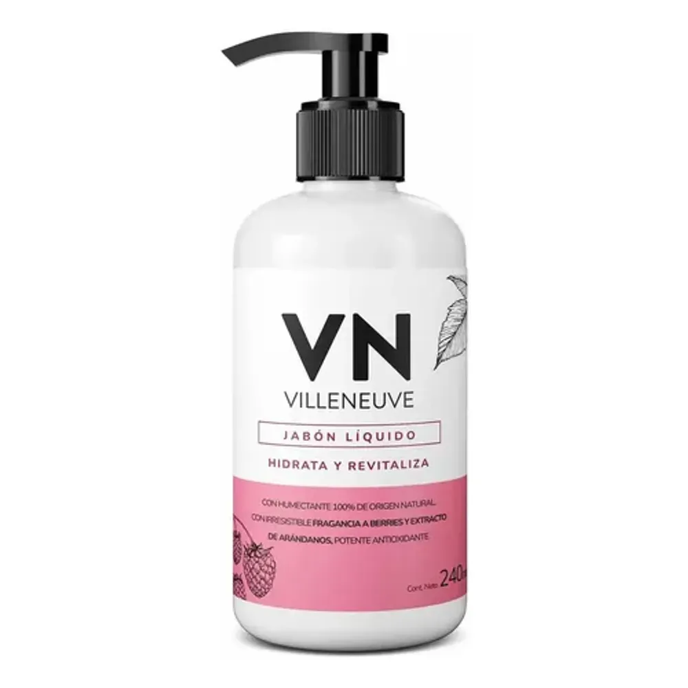 El jabón líquido Villeneuve Berries de 240ml combina glicerina y extracto de arándanos para proteger y revitalizar la piel. Su fórmula cremosa con aceite de coco, rico en vitamina E, limpia suavemente, dejando la piel hidratada y ligeramente perfumada con una fragancia frutal irresistible.