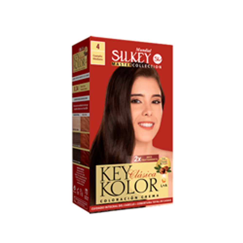 Consigue un color castaño mediano natural con este kit de tinte Key Color que ofrece cobertura total y una fórmula protectora para mantener el cabello sano y brillante.