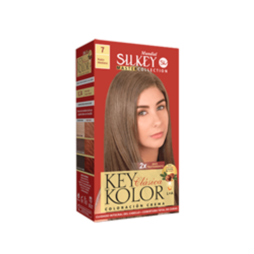 Este kit tinte para cabello Key Color en tono 7 rubio mediano garantiza un color duradero y cobertura completa, formulado para proteger la fibra capilar mientras otorga brillo y suavidad al acabado.