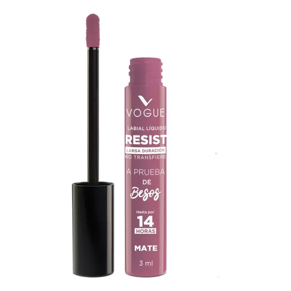 El labial líquido Vogue resistente combina pigmentos de alta duración con una fórmula ligera que se fija firmemente, evitando manchas o desvanecimiento.