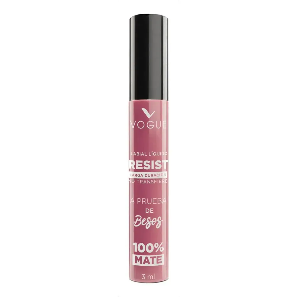 El labial líquido Vogue create una película de color que fija el pigmento para evitar manchas o borrones, manteniendo un aspecto fresco y duradero.