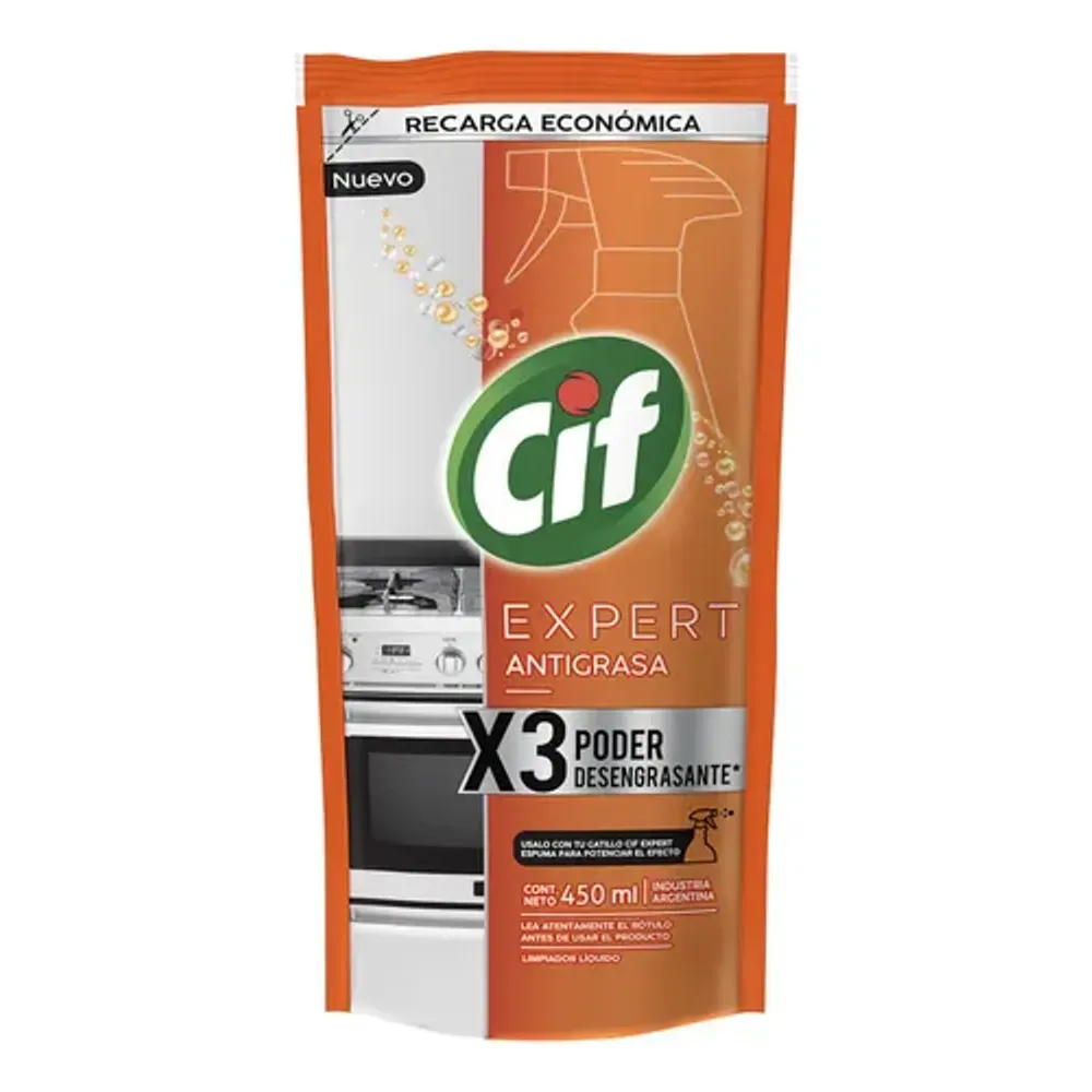 El limpiador antigrasa Cif Expert en formato doy pack de 450 ml es una opción práctica y económica para mantener las superficies del hogar libres de grasas y suciedades. Su fórmula potente elimina la grasa incrustada, facilitando la limpieza en áreas como cocinas, hornallas y campanas extractoras.