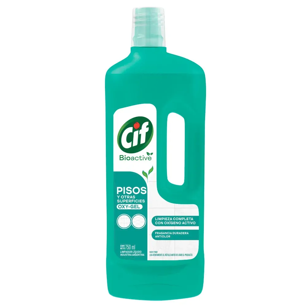 Botella de 750 ml de limpiador de pisos Cif Bio Active Oxygel.