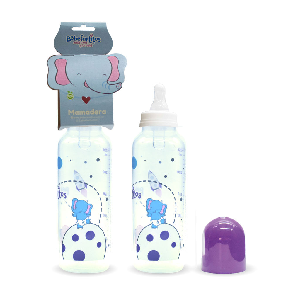 Biberón tipo juguera decorada con tetina de silicona, pensado para aportar diversión y comodidad en cada toma. El diseño estimula visualmente al bebé, facilitando la aceptación del biberón.