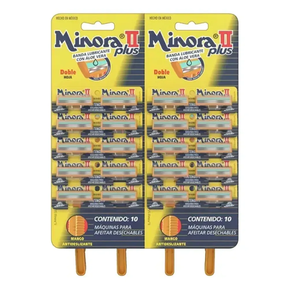 Blister con 20 máquinas de afeitar Minora II Pro desechables.