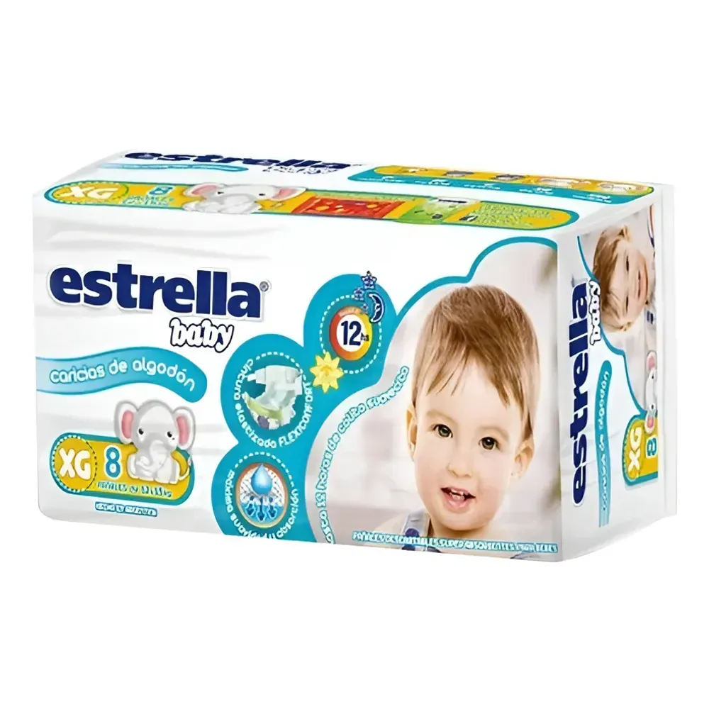 Ideales para bebés que requieren mayor protección y comodidad. Los pañales Estrella extra grandes combinan suavidad algodón con cintura elastizada para ajuste perfecto y protección continua día y noche.