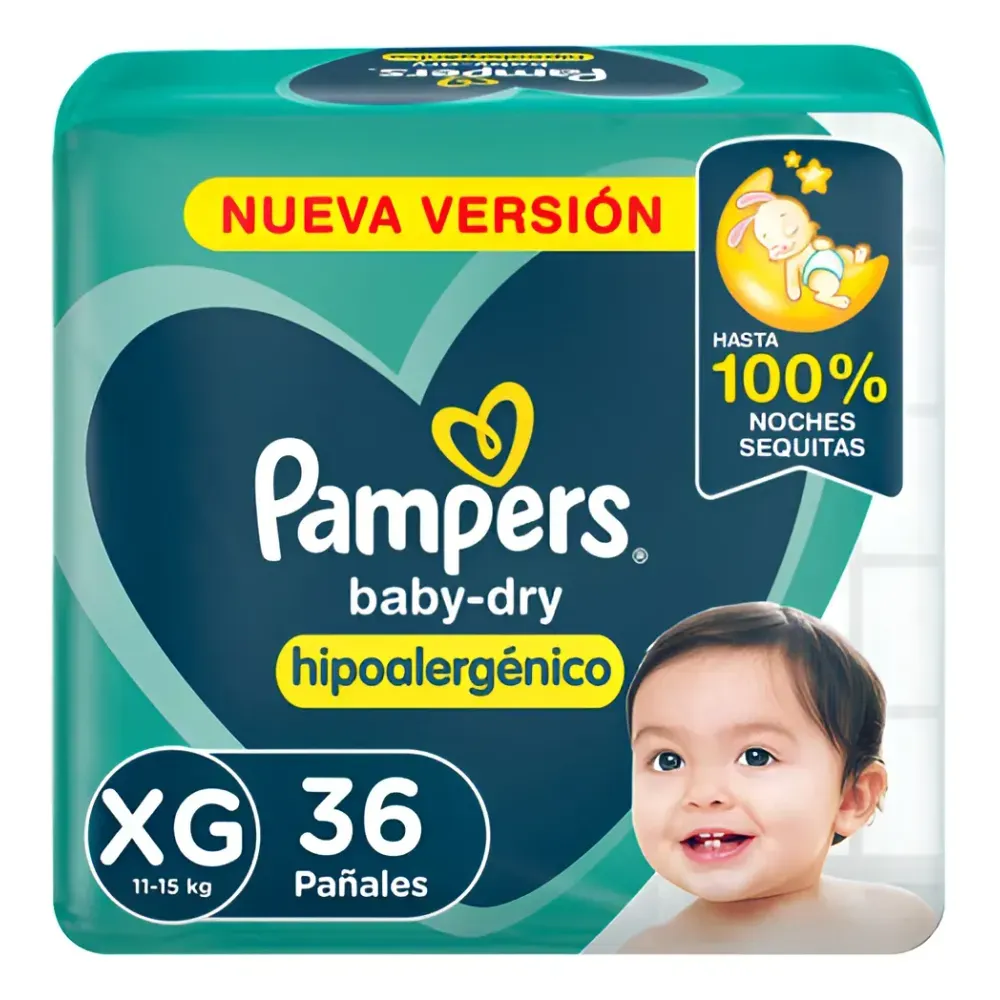Pampers Baby Dry es la opción ideal para mantener a tu bebé seco y cómodo por más tiempo. Su tecnología de núcleo ultra absorbente retiene la humedad hasta por 12 horas, brindando seguridad en cada movimiento. Talle extra grande especialmente pensado para bebés grandes que requieren mayor capacidad de absorción y un ajuste confortable todo el día.