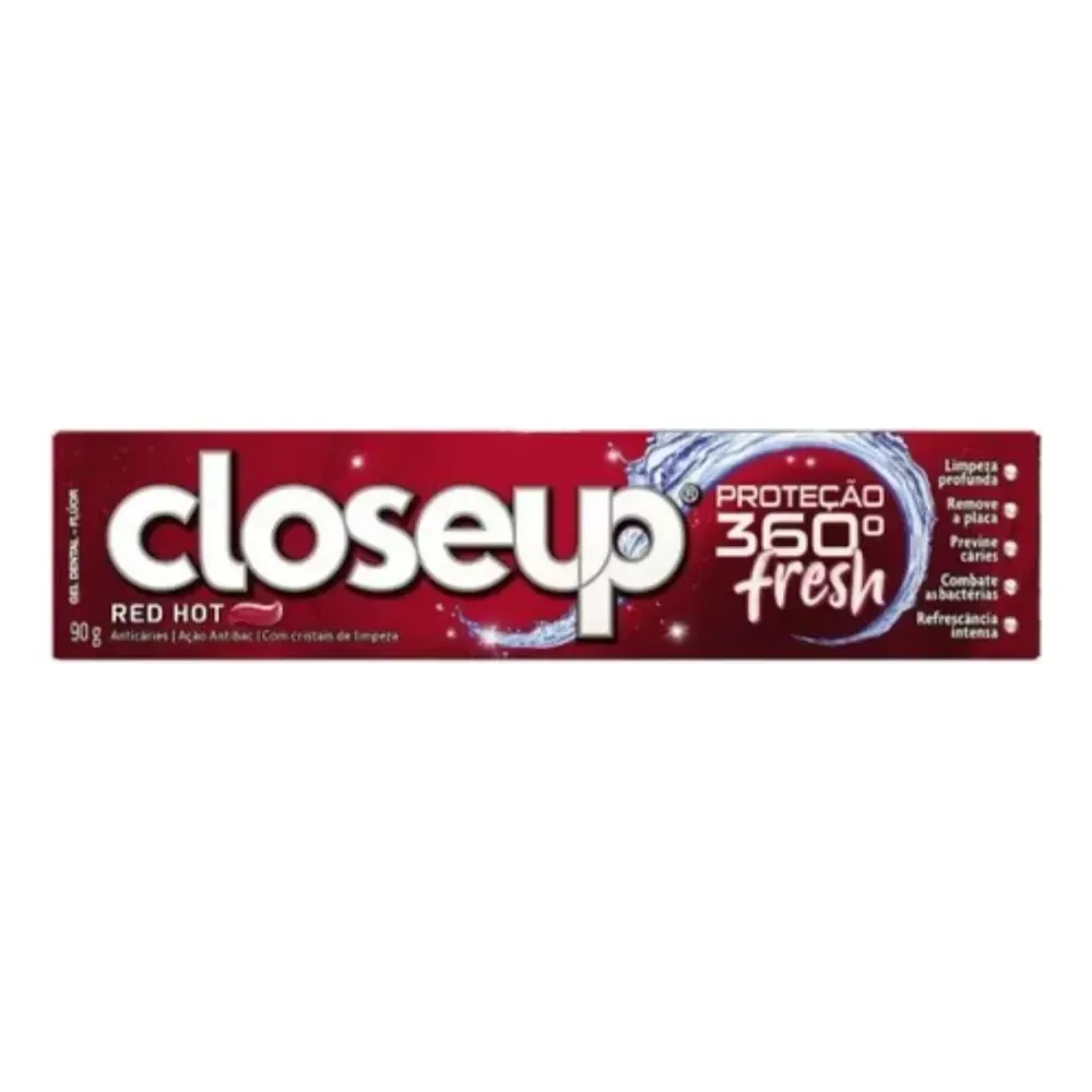 La pasta dental Closeup Protex 360 Red Hot está diseñada para brindar una protección completa de limpieza bucal con un sabor intenso y refrescante. Su fórmula especial combate eficazmente la placa y protege contra las caries, además de ofrecer un frescor prolongado que ayuda a mantener el aliento agradable durante todo el día.