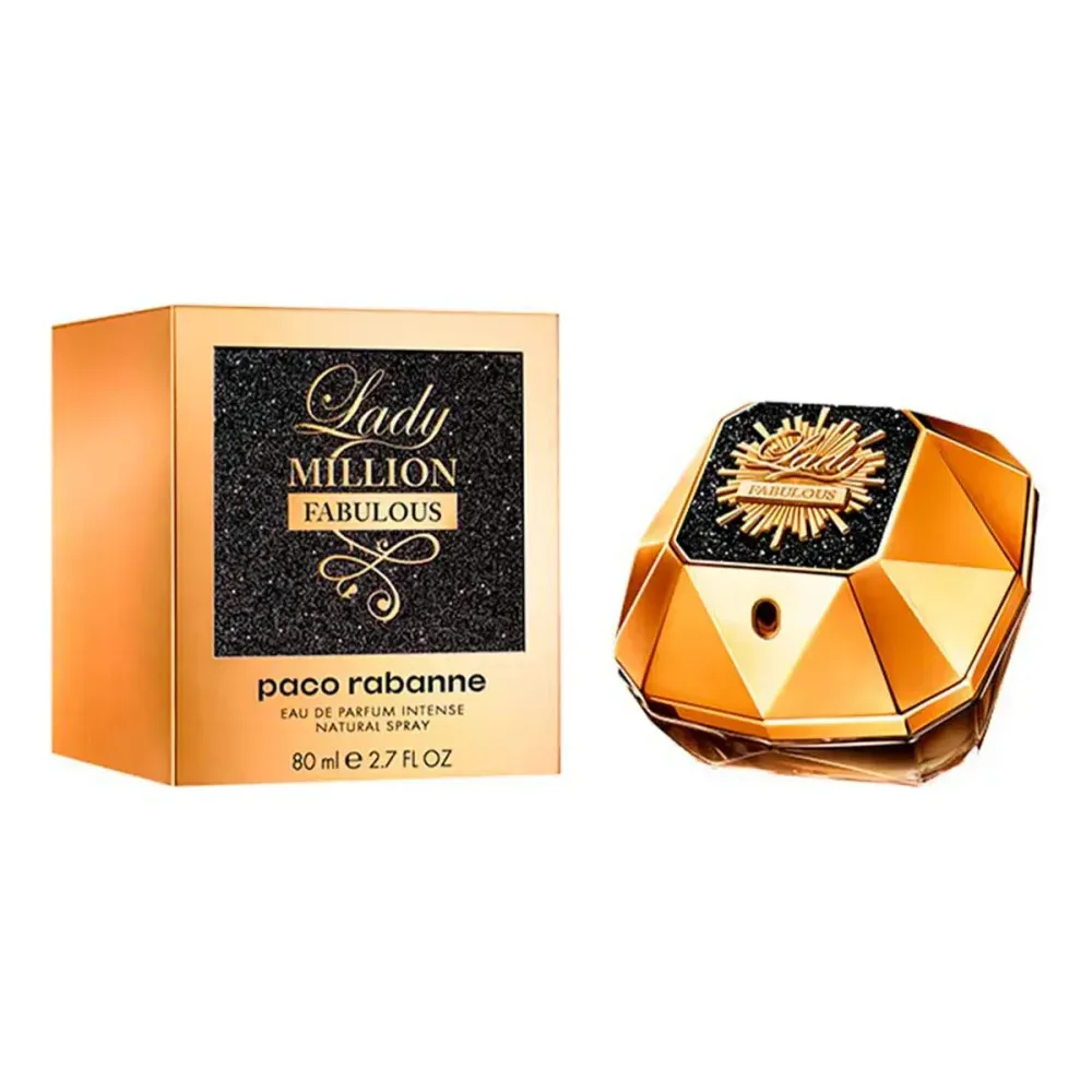 Lady Million Fabulous EDP 80 ml 3cLa vida es maravillosa y es hora de brillar con la fragancia femenina de Rabanne Lady Million Fabulous. Serás la reina de la noche, cuando empieza la fiesta, te conviertes en la estrella fabulosa, intensa y lista para impresionar. Lady Million Fabulous nace con el ímpetu cautivador de la música y el alegre ritmo del baile, para convertirse en una fragancia exuberante y adictiva que se completa con una vibración floral y luz nocturna.Nota de salida: Aceite de MandarinaNotas de corazón: Nardo cremoso, Jazmín, Ylang YlangNotas de salida: Vainilla, Caviar, Haba Tonka, MusgoUna fragancia Floral OrientalPresentación: 30 MLType: standard