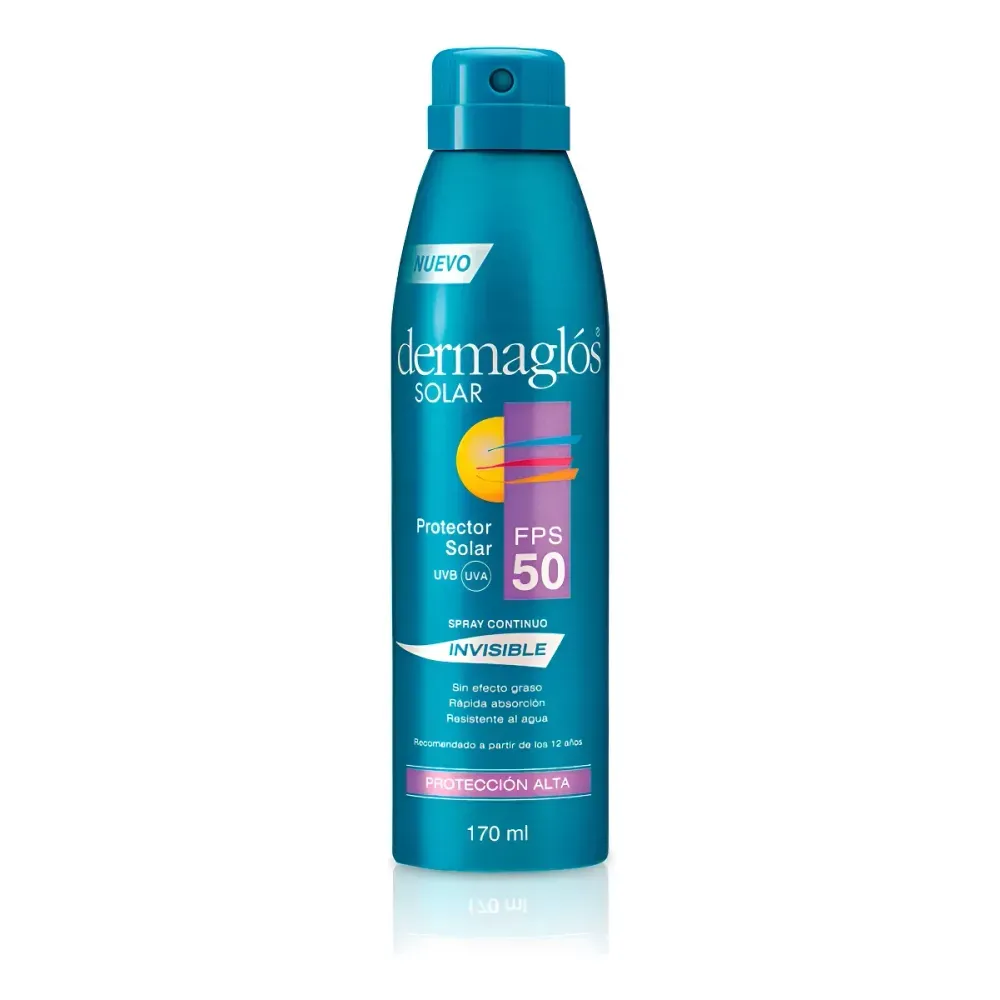 Máxima protección solar en un formato ultra práctico: el spray continuo de Dermaglós FPS 50 protege la piel de los rayos UVA y UVB, manteniendo su hidratación sin dejar residuos.