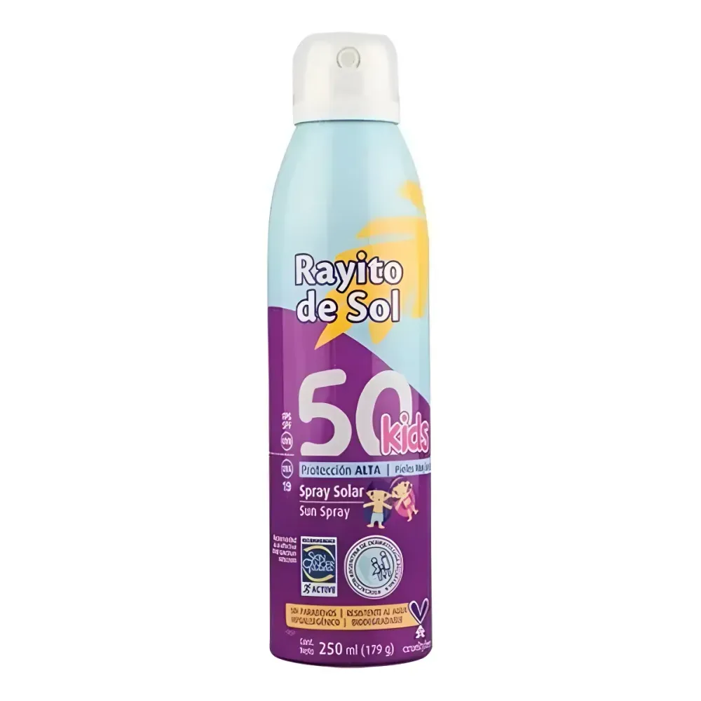 Protector solar especialmente formulado para la delicada piel infantil. Ofrece protección muy alta FPS 50 contra rayos UVA y UVB, resiste al agua y al sudor. Su formato aerosol facilita la aplicación incluso en movimiento.