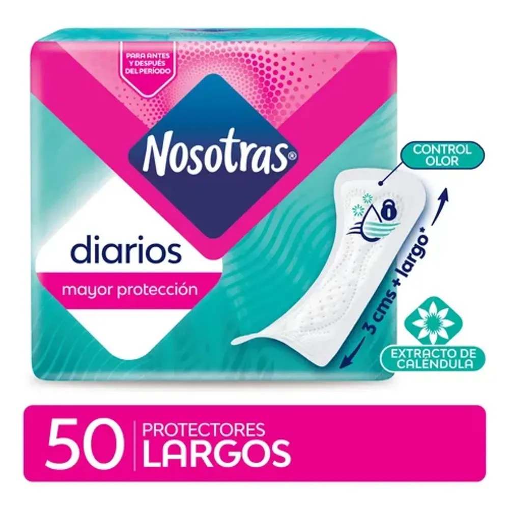 Los protectores diarios Nosotras largos brindan comodidad y protección con un formato extendido para quienes prefieren mayor cobertura y seguridad. Su cubierta suave y delgada protege la ropa interior y ayuda a mantener frescura en la zona íntima.