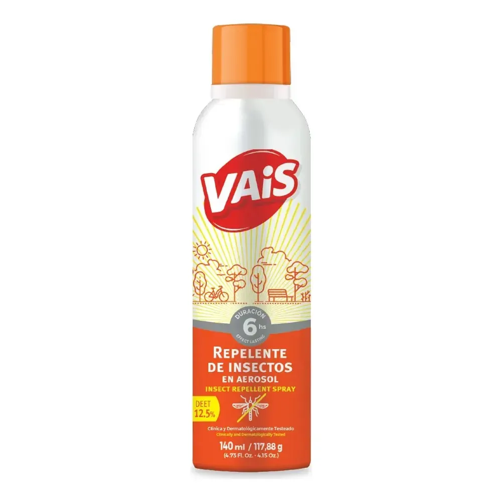 El repelente de insectos Vais proporciona una defensa duradera frente a mosquitos, zancudos y otros insectos voladores. Su formato aerosol permite una aplicación uniforme y cómoda sobre piel y ropa.