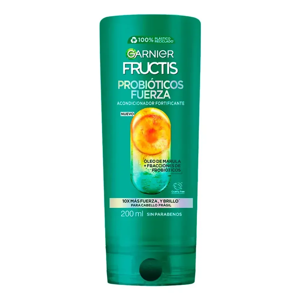 Aplicar sobre el cabello húmedo, masajear suavemente el cuero cabelludo y enjuagar con abundante agua. Para mejores resultados, combinar con acondicionador y crema para peinar de la línea Fructis Probióticos Fuerza.