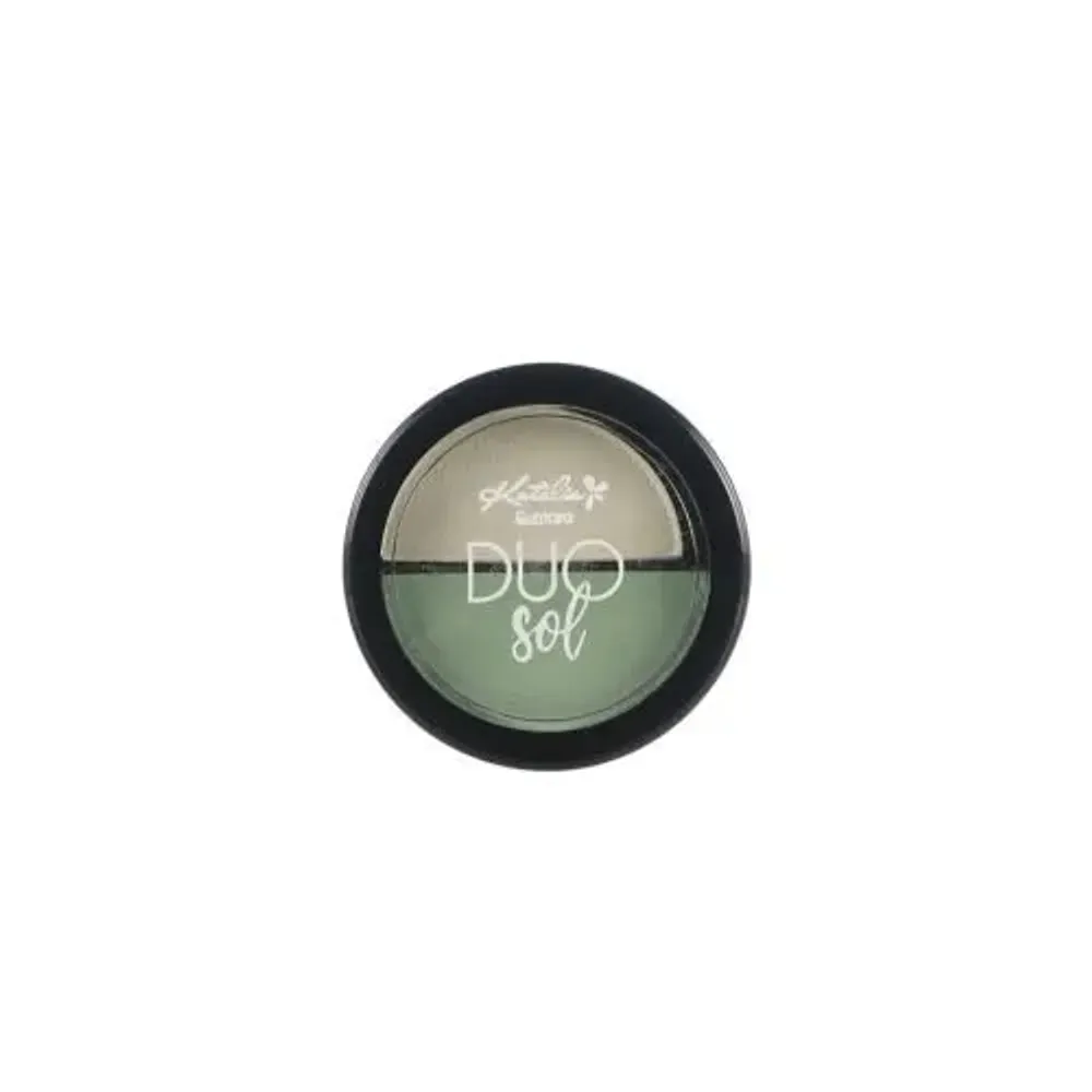 Estuche con dos sombras compactas en tonos verdes, 4 g total.