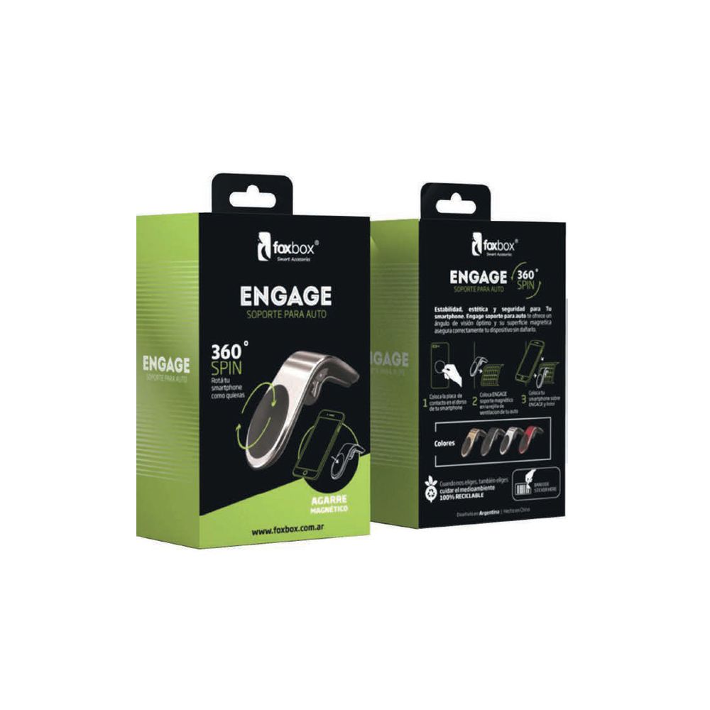 Soporte magnético de color rojo de Engage diseñado para proporcionar una sujeción segura a smartphones dentro del auto. Su magnetismo fuerte permite conectar y separar el teléfono fácilmente.
