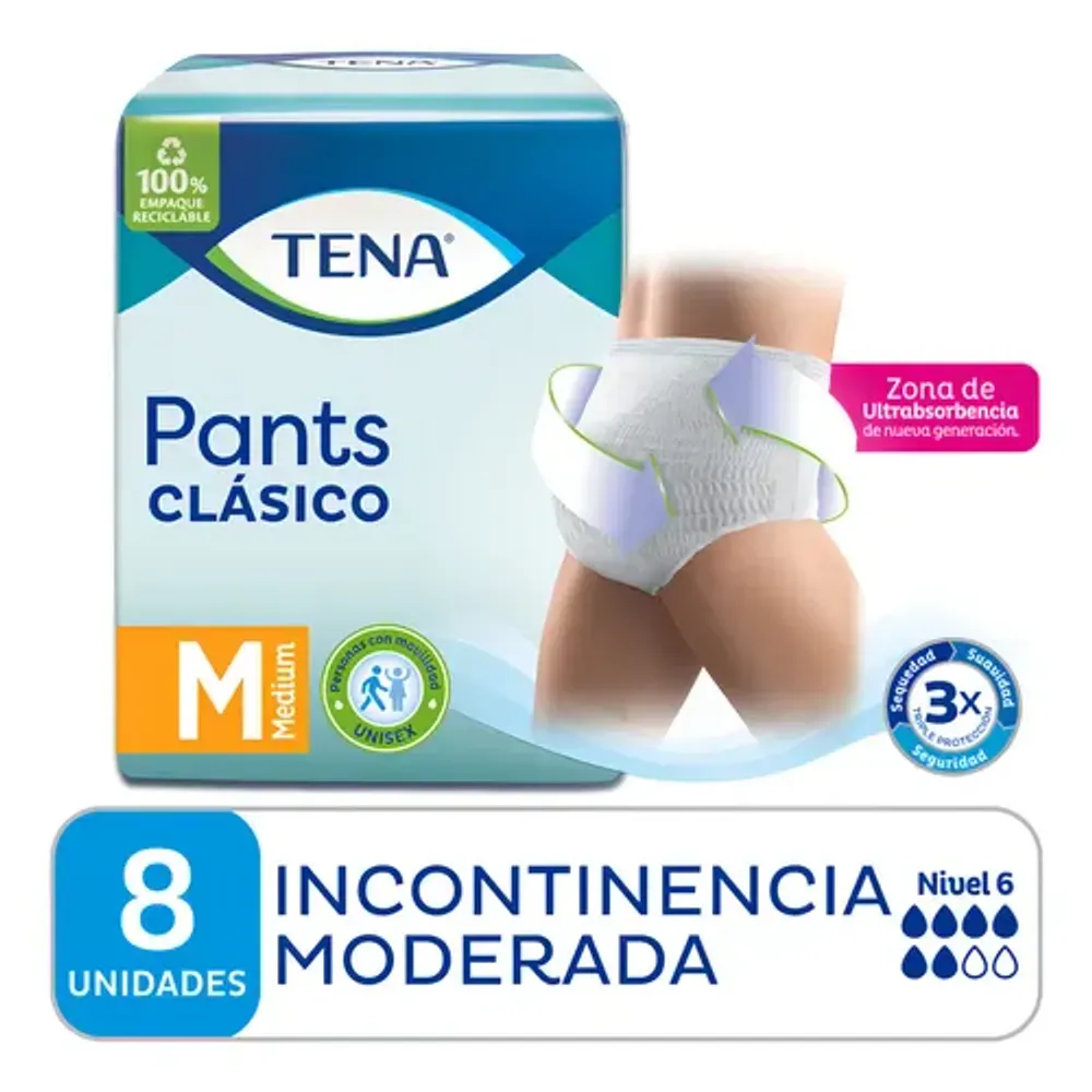 Ropa Interior TENA Pants Clásico talle mediano x 8 unidades.