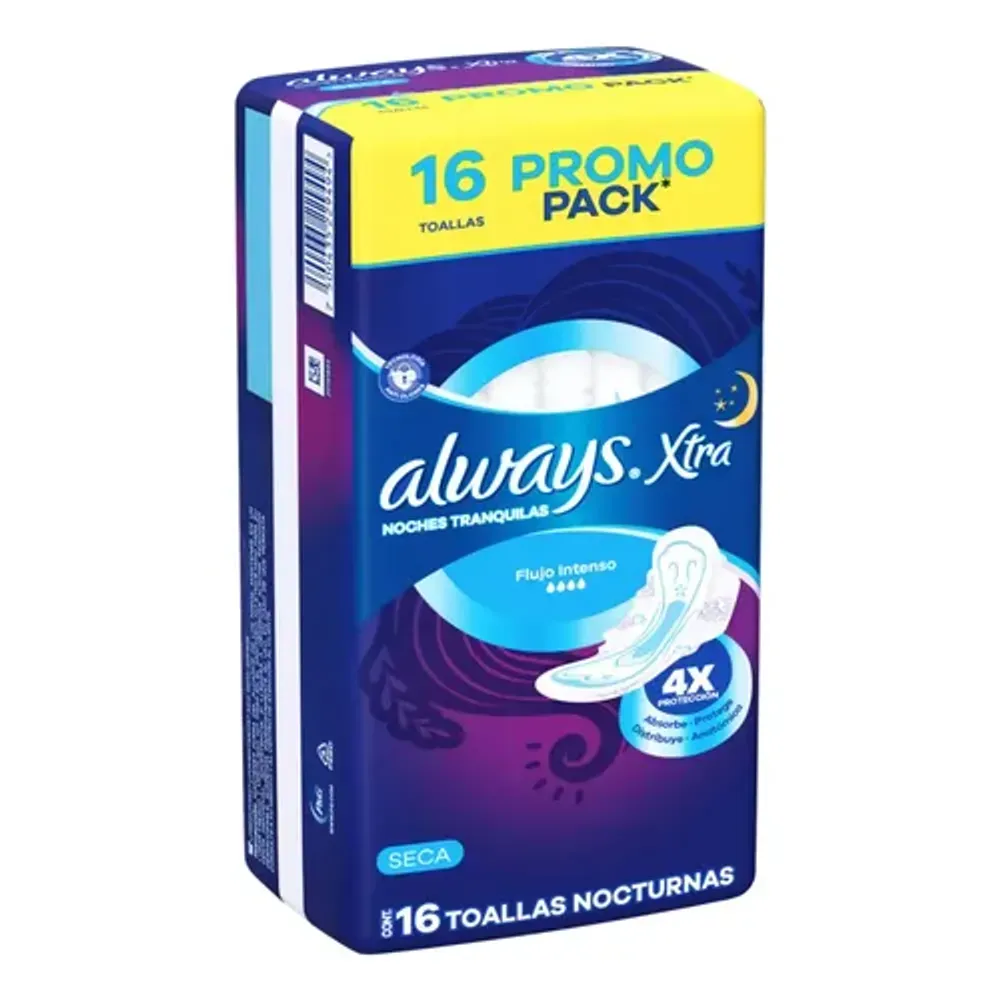 Paquete con 16 unidades de toallas femeninas Always xtra noches tranquilas seca.