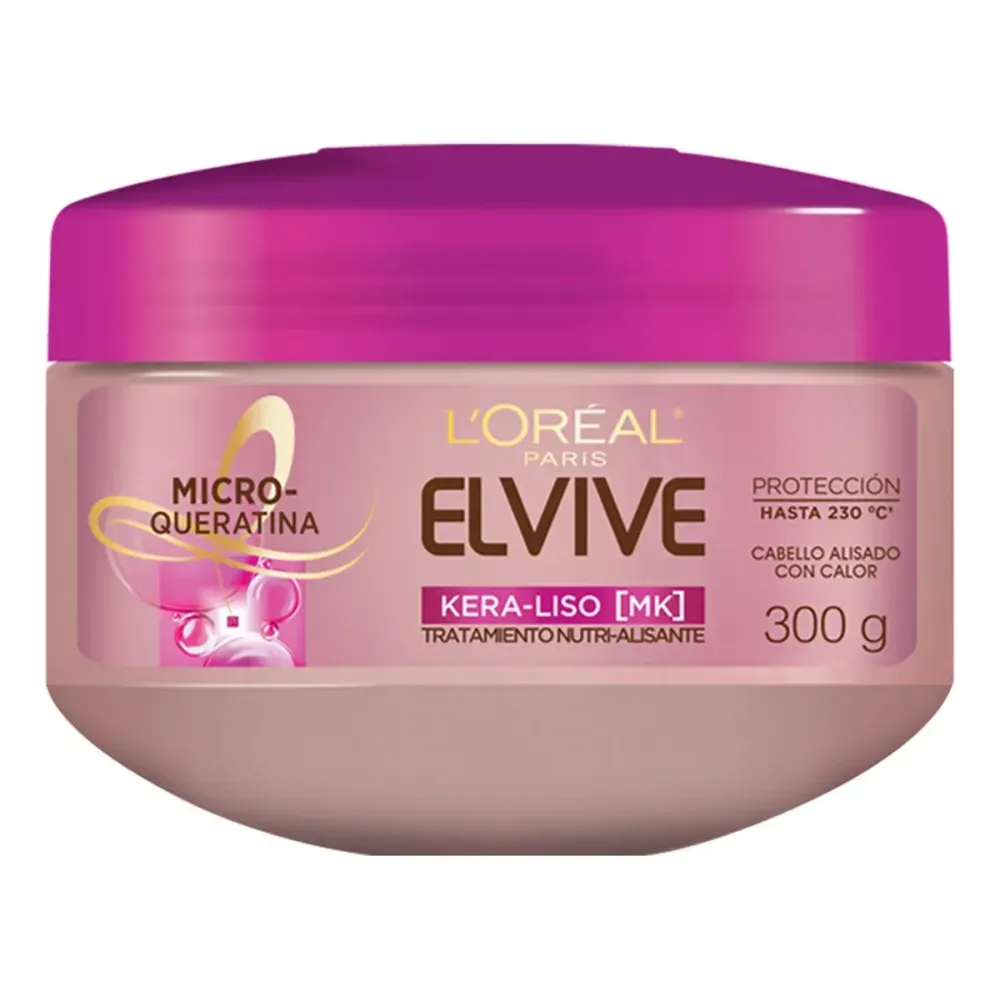 El tratamiento capilar Elvive Kera-Liso Nutri Liss está formulado para nutrir profundamente el cabello liso y rebelde, facilitando el control del frizz y aportando una suavidad y brillo excepcionales. Su fórmula con queratina ayuda a fortalecer la fibra capilar, mejorando la textura y manejabilidad.