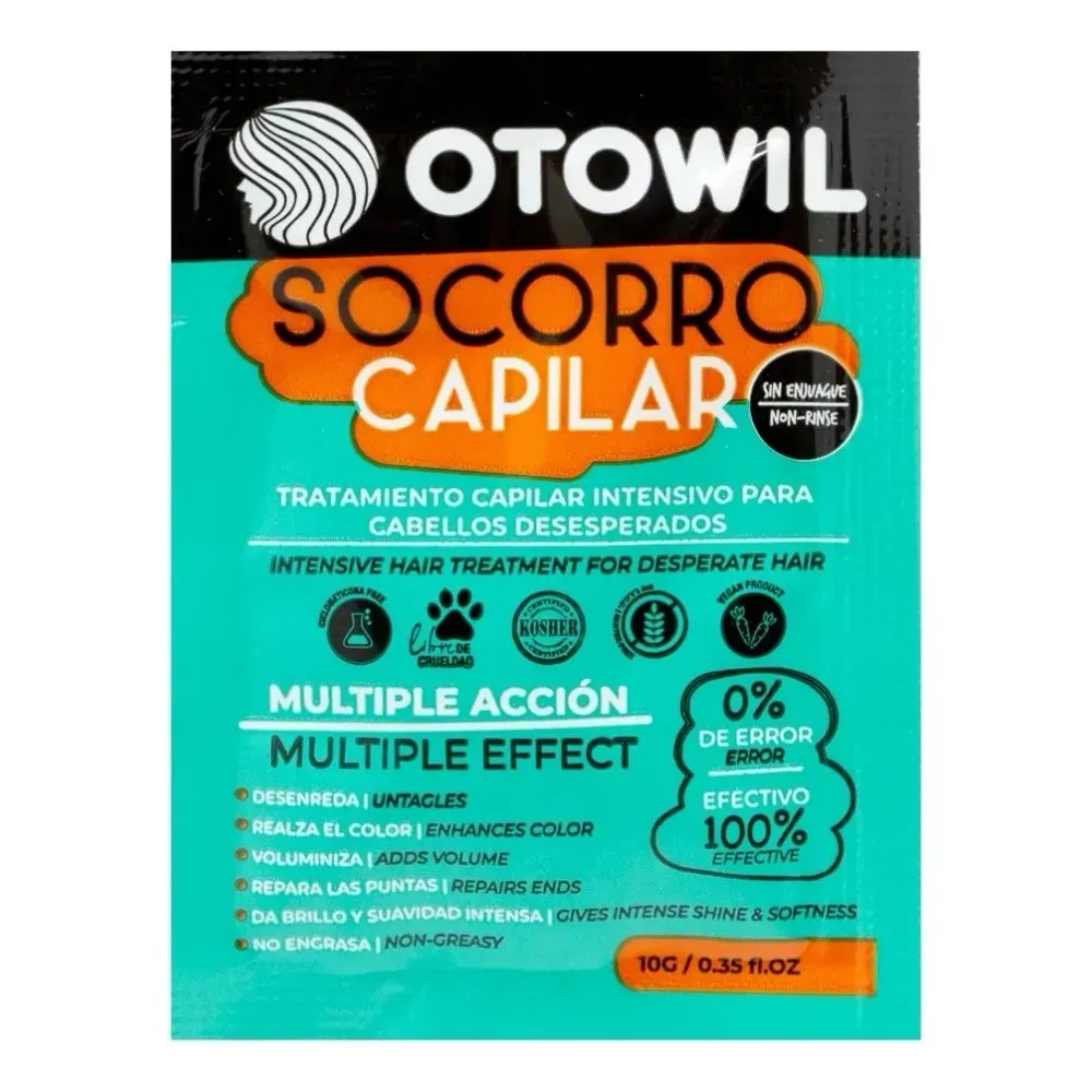 Tratamiento capilar intensivo de acción múltiple en presentación práctica en sobre, ideal para reparaciones rápidas del cabello. Esta fórmula sin enjuague ayuda a desenredar, reparar puntas abiertas, revitalizar el color y aportar volumen y brillo al cabello.