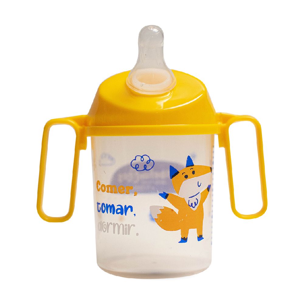 El vaso con tetina de silicona Bebefantitos es la opción ideal para acompañar la transición del bebé de la mamadera al vaso, promoviendo su autonomía.